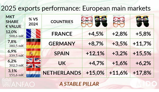 Traditiegetrouw hield de MIDO in Milaan voorafgaand aan de beurs die zaterdag opent, een persconferentie waarin het uitvoerig aandacht besteedde aan alle activiteiten op de beurs, de nieuwtjes, de trends en vooral ook aan de ontwikkelingen binnen de grote Italiaanse optiekindustrie. Die draait zoals bekend vooral op de export van monturen en zonnebrillen en heeft net als in veel andere sectoren last van de geopolitieke ontwikkelingen en de daarmee gepaard gaande onzekerheden. Voor de Italiaanse optiekindustrie betekende dat in 2025 een scherpe daling van 34% van de export naar de Verenigde Staten. Europa deed het daarentegen heel goed. Nederland pluste vergeleken met 2024 bijvoorbeeld met 15% in waarde (11,6% in monturen, 17,6% in zonnebrillen). In totaal bleef de daling van de export met een min van 3,9% nog redelijk binnen de perken. Voor dit jaar zijn de vooruitzichten voorzichtig positief en hoopt iedereen op tenminste een beetje rust en stabilisatie. De MIDO hoopt daar met 1.200 exposanten het komende weekend een steentje aan bij te dragen. Wij hebben er in ieder geval zin in.