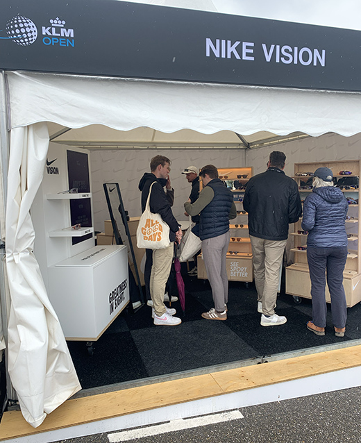 Marchon deed dat afgelopen weekend met Nike Vision tijdens het KLM Open in Badhoevedorp. Het weer werkte niet altijd mee maar zoals altijd had ook hier het nadeel ook een voordeel. De wedstrijd moest op sommige dagen uitgesteld worden waardoor de tienduizenden bezoekers aan het toernooi lekker veel tijd hadden om het promodorp te bezoeken.
